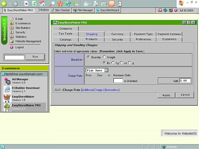 The rate range shipping and handling function allows you to automate shipping charges based on quantity and weight.